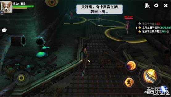 这是一关与众不同的关卡。进入地图后,友友们可能会发现一路上小怪都顶着个警示圈,同时右边的任务提示不能被怪物发现超过1次。在该场景中有一只一直在碎碎语的小怪,我们只需尾随它即可,记得尾随它即可!