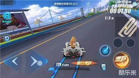 第二步,超级起步结束的瞬间按下右(左)向键,同时按下漂移键进行漂移(漂移键轻点一下后放开即可,漂移角度约为45度)。
