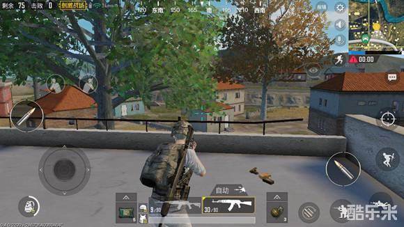 城中毕竟危机四伏,建议捡到四倍镜和步枪之后,装备较为富裕,可以选择到南部的山坡上狙击城内的敌人,趴在山坡上即可开镜狙击,也可以清除观察到学校的动静,只要有人从学校跑出来那就完全暴露在我们的视野下了。