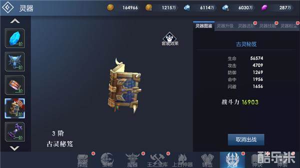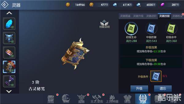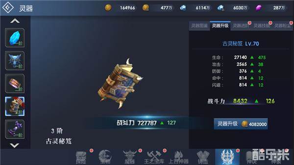 灵器可用灵器进阶符成长进阶,极大提高属性。