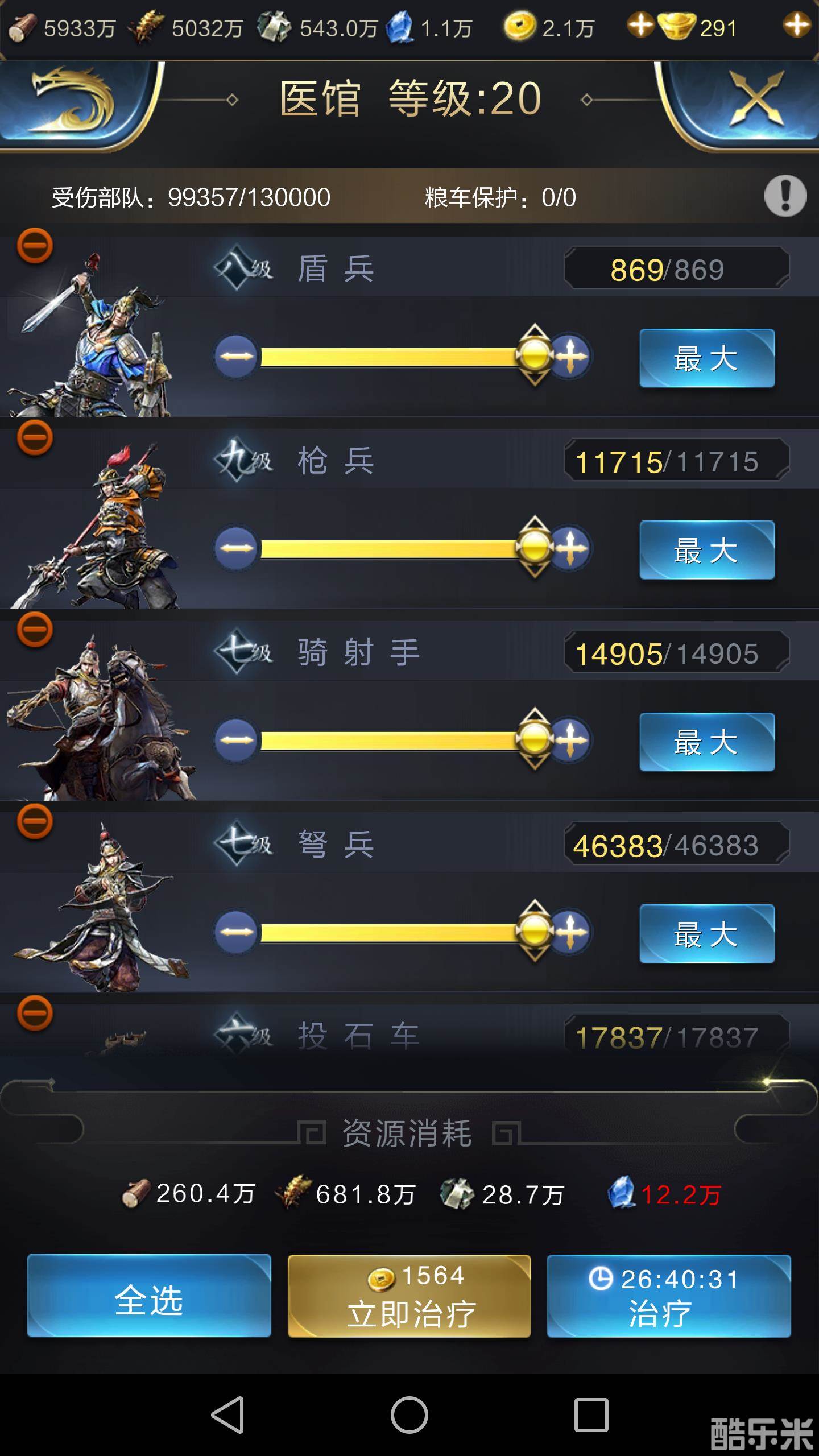 第三种就是秒医兵,所谓的秒医兵并不是一秒钟击杀医兵,而是在敌人就要抵达我方城池时,加速医完伤兵(也就是对伤兵立即治疗)。虽然这一招对于对手会来一个措手不及,但是所需要的资源消耗还是很大的,当然这个时候你一定能完美坑杀敌军。