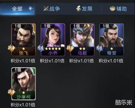 武将的战斗力决定积分加成的高低。头像下方是积分加成。