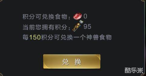 联盟狩猎的积分可以用来换取神兽所需要的食物。每150积分可以换取一个食物。