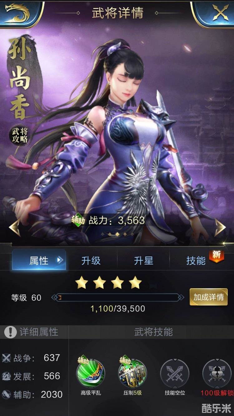 打野我主要用孙尚香、张角,为辅助紫将;孙尚香每日任务可获得3个将魂、张角可通过活动获取,都非常好升级的,一般升级到40、60即可,其他资源更多用于发展、战争武将。