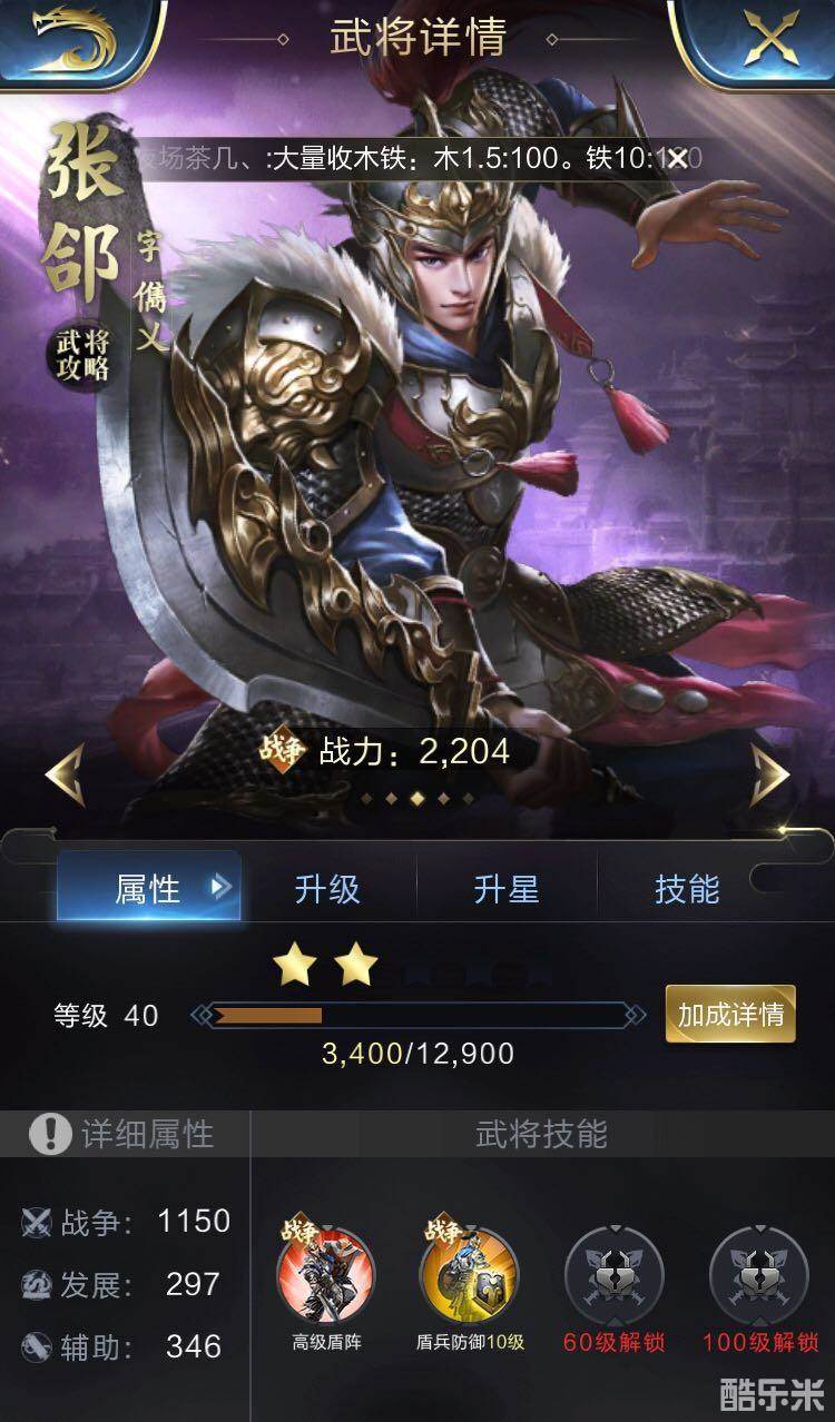 方案一:一般玩家建议使用张飞+张郃,充值到V6即可获得五星张飞,张飞作为枪兵最强加成、张郃拥有高级盾征,一攻一防作为普通攻城,目前还是比较流行。张飞的技能推荐学习枪兵攻击、枪击、盾墙,张郃推荐盾兵防御、攻击。