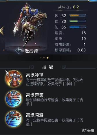 高级闪避:有一定概率闪避伤害。闪避技能进一步加强了近战骑兵的战场生存能力。