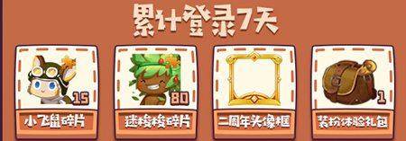 累计登录7天:小飞鼠碎片*15、迷梭梭碎片*80、二周年头像框、装扮体验礼包*1