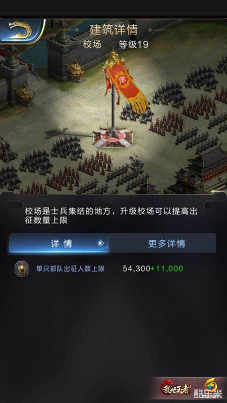 其次,建筑的升级也有助于增加出征人数,大家都知道,校场是练兵的地方,同时,校场的升级也可以使单支出征部队人数增加,等级越高,出征人数越多。
