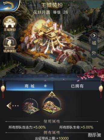 属性:所有部队攻击和防御+5%,单次出征上限+10000,时效永久。