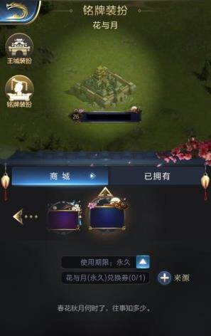 花与月铭牌可在中秋活动中的花好月圆活动中兑换。