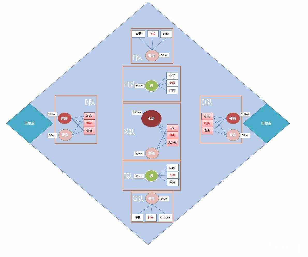 除了游击阶的成员意外,其他分配占领建筑,每个地方都要三人小队,原因: 1—三人塞兵吓退单个人员. 2—遇到比单个人略强的敌人可以进行三人集结,远比单人方便. 3—三人小队都要设立队长方便调控.