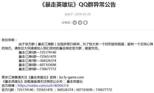 快来加入《暴走英雄坛》官方新群公布