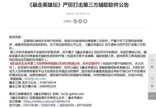一直以来,游戏行业内的外挂现象层出不穷,而使用外挂的人与外挂制作者也饱受人们的诟病。《暴走英雄坛》对此表示,坚决抵制各种形式的外挂、加速器、第三方辅助软件等等,违者将会被处以公示、短期乃至永久封号等处理。