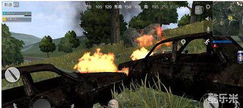 当然,车子有一定的耐久度,被射击的过程中容易爆炸,因此我们要先退后一定距离自己将车打打爆,打爆后的车就成了绝佳的人造堡垒。单排的时候想要布置这个掩护工程十分困难,但是可以借助一些地形来达到类似的效果,比如靠着草垛或者大树。