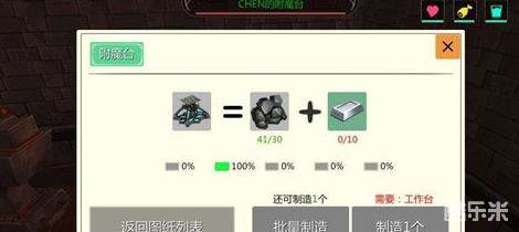制作一个附魔台需要30石块10铁锭和一个工作台