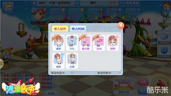 在《浪漫音速》的游戏房间中,使用动作需要消耗卡片,而卡片可以通过任务、签到、活动或是商城购买的方式获取。男性动作类型跟女性角色的无太大出入,同样是“比心”“奥义操”“撒娇”“称赞”等十二个,但是做出来的模样却大不相同。比如男性的这个撒娇动作,当他说出“来抓我啊”的时候,还真让人有种把他抓过来揍一顿的冲动。此外,“行礼”、“打招呼”“烦恼”这几个动作在男性身上体现也很有男性特点,这里就不一一赘述啦。