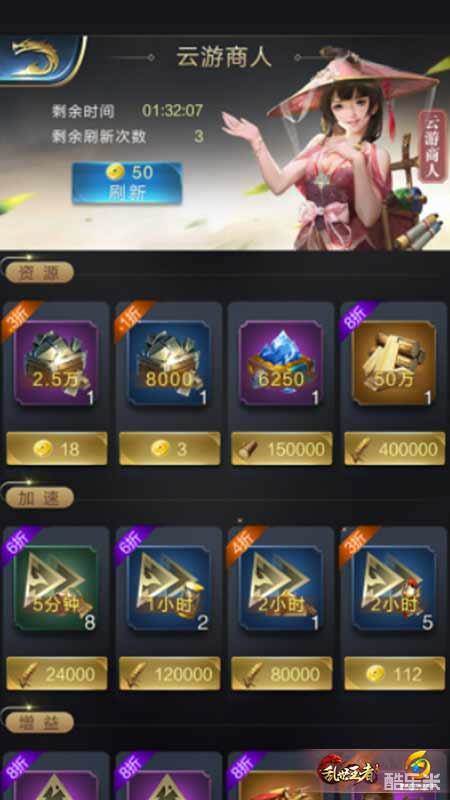 乱世王者中每隔一段时间云游商人就会出现,她会携带大量的资源、道具和玩家交易。下面主要就来给玩家们介绍一下,云游商人哪些道具是值得我们购买的。