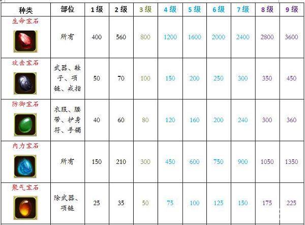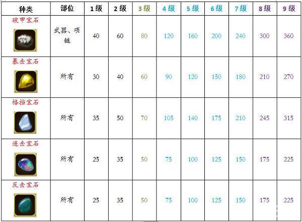 目前仅收集了1-9级宝石属性,欢迎各位进行补充。