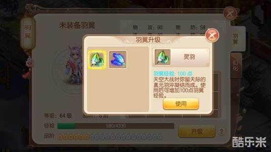 羽翼升级需要消耗羽翼经验类道具:灵羽、仙羽,并且随着羽翼等级的提升,所需消耗的羽翼经验道具数量会随之提升。
