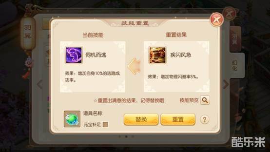在升阶过程中,如果获得了不合适于门派的羽翼技能,可以重置羽翼技能。