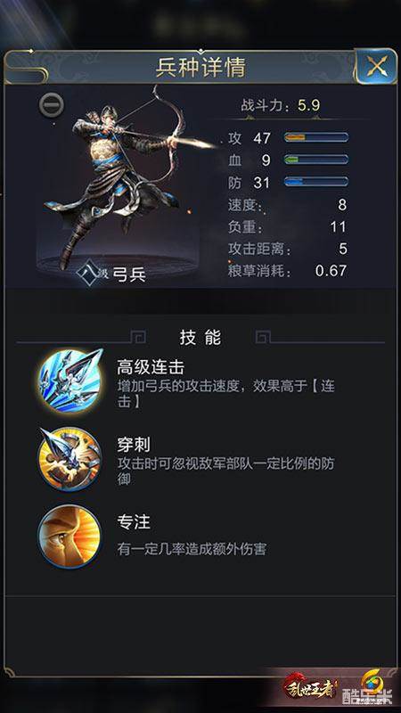 但还要考虑一个问题,枪兵在战场上很容易受到对方弓兵的攻击,而弓兵这兵种有一个让人又爱又恨的天赋技能【穿刺】,攻击时可忽视敌军部队一定比例的防御。另外随着黄月英上线,投石车碾压也可以忽略目标一定的防御力。