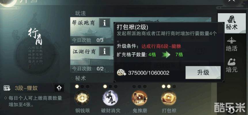 这种就需要配合技能【打包袱】可以提升行商时行囊的数量哦。