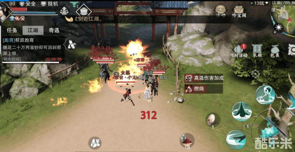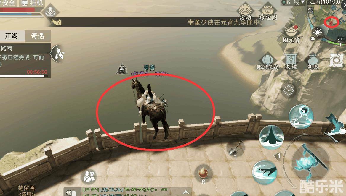 遇怪的时候其实挺多,在你轻功到薛家的时候一般都会遇怪,战斗中无法换线,小喵是纯奶十分讨厌打这个头领,我一般是直接站屋顶,然后脱战换线。
