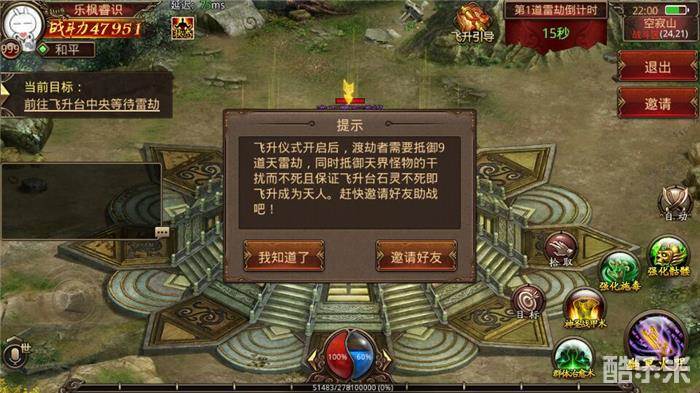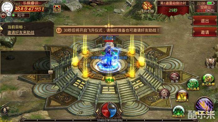 开启飞升后,在第一道雷劫降临之前,玩家有30秒的准备时间,这时系统会自动提示玩家可邀请好友帮助渡劫,可以选择求助,也可以选择独自渡劫。