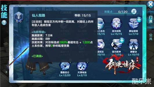 朝指定方向冲刺一段距离,对路径上的所有敌人造成伤害。施法距离7米,冷却8秒。满级效果对目标造成280%基础攻击+1200土系伤害,附带眩晕2秒。冲刺技能进可追杀敌方退可逃跑保命,其次还能分割战场对路径上的敌人造成眩晕效果,仙人指路是指向型技能需要有较好的操作和预判能力。
