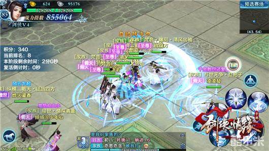 保证生存的同时,我们也要收人头获得积分。在战斗开始之后,我们尽量在战斗开始的前期参与混战,这个时候会有许多战力很低的少侠还存活在场,击杀比较容易。我们可以开启混沌剑阵入场啸风三连击和雷动九天直指血量不足的少侠,争取拿到人头提高排名。