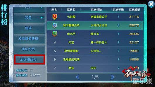 好汉有坐次,江湖有排行。排行榜一直都是少侠们关注的热点。大家都关注着家族排行,这是集体荣誉的象征;关注门派战力排行,预测自己在门派竞技中会遇见哪些难缠的对手;关注着华山论剑的排行,看自己的队伍是否可以进入决赛。这一次版本更新中,排行新增全区服战力排行榜,我们一起看看吧。
