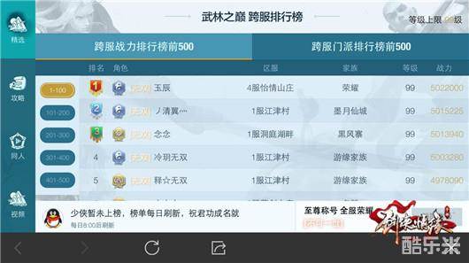 在跨服战力排行榜前500中,我们可以看到所有和你所在区服开放了相同等级上限的区服内少侠战力排行前500名。如果你榜上有名就可以领取称号“不可一世”。