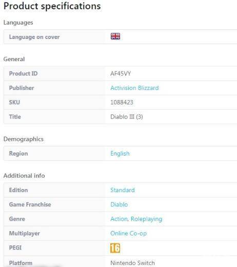 现在,《暗黑3》Switch版的商店页面已经上架,官方对于此事当做不知道也没有第一时间回应,到底是零售商团队自己弄的信息还是官方默许的呢?先来看看这个页面里有什么吧!