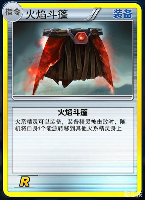 具体效果:火系精灵可以装备,装备精灵被击败时,对方出战精灵增加3枚<伤害指示物>