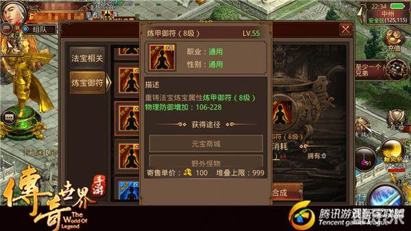 《传奇世界手游》炼宝御符 御符合成玩法及种类简介