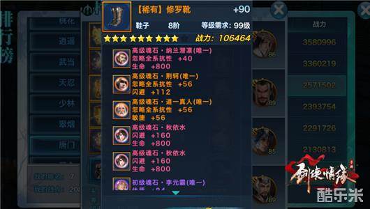 鞋子魂石搭配推荐:李元霸、纳兰潜凛、道一真人、荆轲、秋依水。多余的孔都带秋依水。