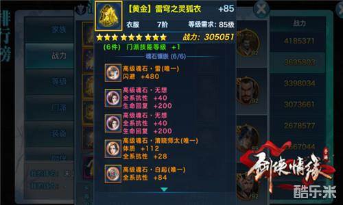 下面将针对战力比较高的少侠主打均衡的昆仑,在通过皇陵套和强化套、魂石镶嵌套装将面板攻击力弥补和同战力其他门派之间的差距后。
