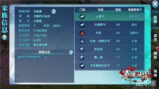 家族在《剑侠情缘手游》中一直担当着少侠们的归属、家园。很多活动都是基于家族进行的,比如家族运镖、武林盟主、始皇降世等。家族越强在活动中获得的资源也就越多,每个家族成员的分红也就越多。但是并不是每个家族都强大,有一些小家族反而比大家族更加温馨,那么小家族应该怎样管理,下面就来看看。