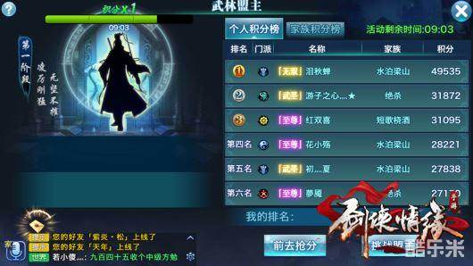 武林盟主作为剑侠江湖上的老大,每天都要接受江湖高手挑战。虽说每次都打不过,但我们的盟主大人也是给我们了足够的奖励。当然,作为一个家族性的活动,在武林盟主中取得更高的分数,不仅要保证及时的进攻盟主大人,更要抓紧时间夺取竞争对手的分数。为了家族荣誉,为了更多的奖励物品,让我们来一起分享一下在活动中的得分技巧。