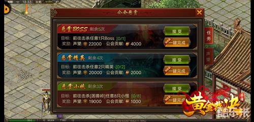 勇士每天都可以在主城安全区悬赏使者处领取公会悬赏任务,悬赏任务有三大类,分别是悬赏Boss,悬赏精英,悬赏小妖。任务的内容和奖励也是成正比的,详情请看图2: