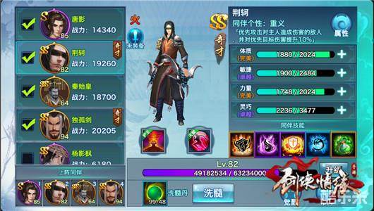 1、“双灵巧双力量”也就是同伴“唐影、荆轲、独孤剑、赵云”
