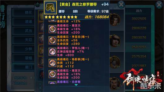 唐门腰带建议是带纳兰真,体质不高带南宫灭加的血也不多。