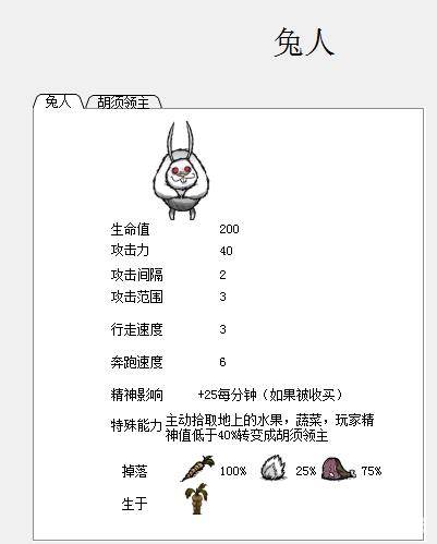 当你的精神值降到40%以下时,兔人会变成胡须领主。