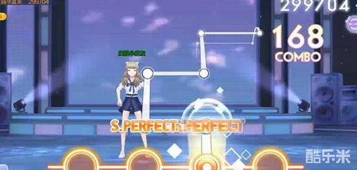歌曲结尾的副歌部分,音符会更加的密集,并且音符的难度会略微有一些提升,这里的变轨音符非常密集,另外还有上图中穿插的一些长按滑动音符。这首歌的节奏感非常强,按键上注意跟着旋律点来,这样可以提升S.PERFECT的音符数量,这是拉开与其他玩家分差的重要方式。
