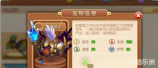 宠物分析:作为一款辅助选手必备的宠物,雷霆领主有着较高的生命加成。【治疗弹】可以为治疗对象一次性回复自身生命42%的生命,搭配高生命武器、生命加成宝珠等一起使用效果非常给力,有时可以将团队中的丝血输出直接奶至满血,是一位可以将你从鬼门关中拉回来的男人。