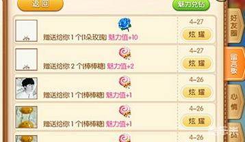 收到好友赠送的礼物是目前提升魅力的唯一途径,如果你想更快地获取更多的魅力,那么就需要多加一些好友,这样大家就可以把在游戏中获得的各类礼物赠送给你。当然,如果你的经济基础较好,也可以选择和其他玩家互刷礼物,这样就可以迅速提升魅力值。