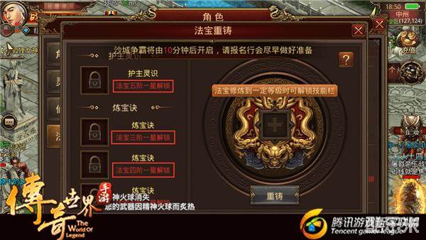 《传奇世界手游》法宝重铸系统玩法介绍及消耗分析