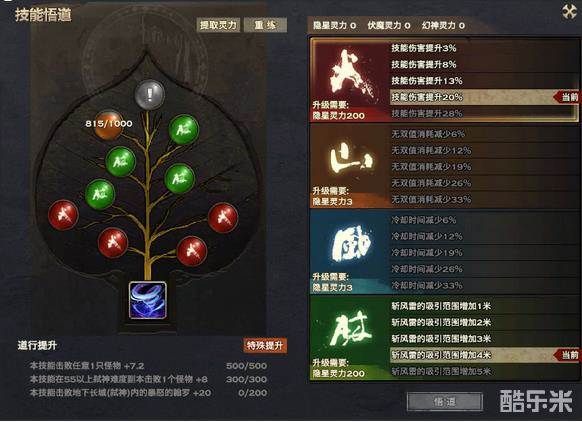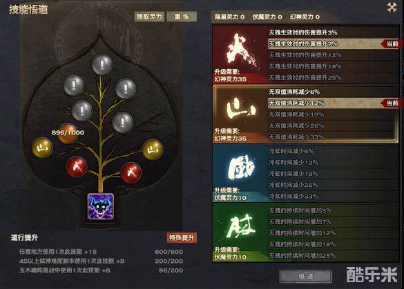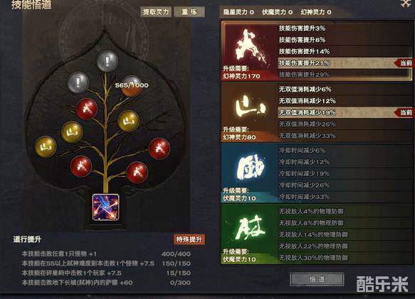 标红的5个无双技能都是毫无疑问要选用的,至于到底是用暗月还是用幻刃,楼主个人偏向使用暗月,因为暗月单体爆发较高,而幻刃的话,如果你幻刃打在奶妈霸体上,控制不住不说,自己3s的僵直,3s时间 奶妈能给自己奶出吨奶量。所以不推荐使用。下面附各无双悟道的方法: