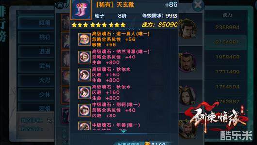 峨眉对敏捷没有额外加成所以鞋子上面大多数魂石都是带秋依水。道一和年兽如果是需要凑橙色套的少侠建议都带上。
