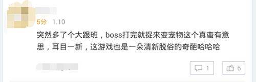 还有类似评论:“原来boss是孵化后就可以变成战宠,有了战宠以后天天想法子给他挣战宠丹,别人家的战宠都有凭什么我家的没有。”